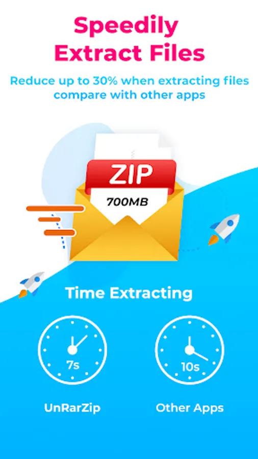 + With Zip file extractor opener, Rar extractor and compress file Zip 7Z app, you can quickly compress files into Zip, 7z format in just a few seconds saving you up to 40% compressing time when compared to other apps