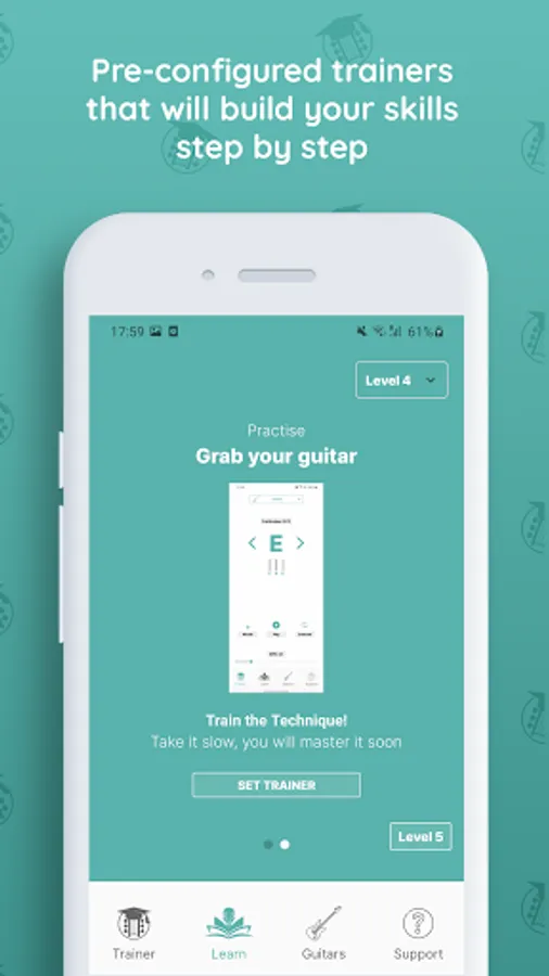 With easy tutorials on the Fretronome Trainer app, you can become a master at learning guitar fretboard almost instantly. You can memorize the notes in a way that you will never forget. On the app, you will have pre-configured trainers to help you train quickly and easily. You can also create your own training programs to learn guitar the way you like.