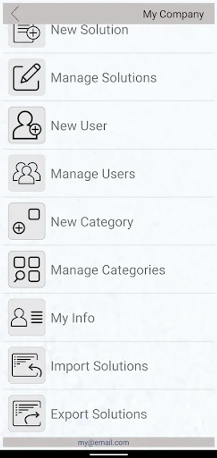 2) Create the users for your company through "Manage Users", so multiple people can go in the app and search or create solutions. You can also make users "Administrators" or not, which means you can control who has the ability to change data or just view it