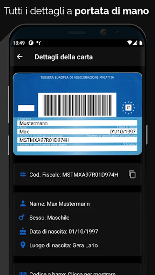 With our "Italian Health Card" application you can always carry your health cards and those of your family or friends with you.