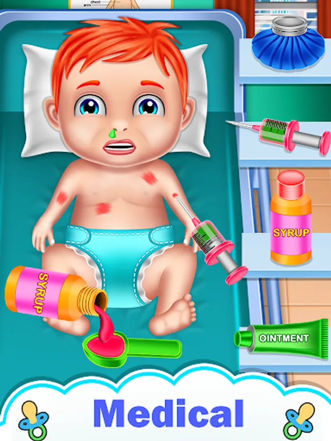 Use a thermometer and check newborn health. Take injection. A fun filled doctor game that lets you check problems of other newborn patients and fix them.