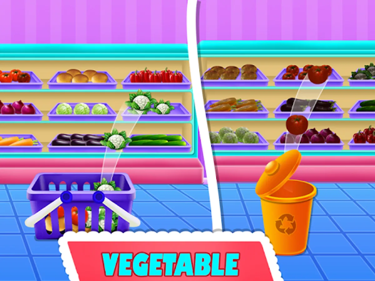 Help to sell fruits , vegetables and grocery items in shopping mall game.