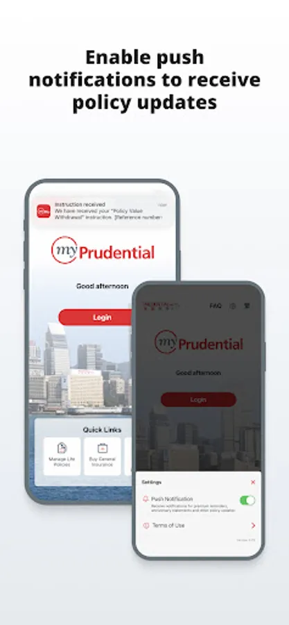 • Manage Insurance Policies & Claims – Easy log on to myPrudential with biometric authentication and get policy alerts and messages through push notifications.