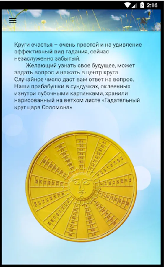 The folk calendar will acquaint you with the wisdom of our ancestors. Fortune telling "King Solomon" will allow you to know the future.