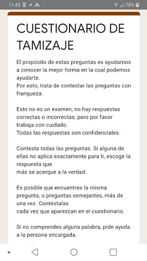 It is a questionnaire for screening problems in adolescents or positive for its figures in English, it provides a margin of intervention in which it is proposed as a diagnostic evaluation instrument to detect and promptly attend, in this case, to children and adolescents drug users or at risk of consumption, as well as vulnerability in different areas of life.