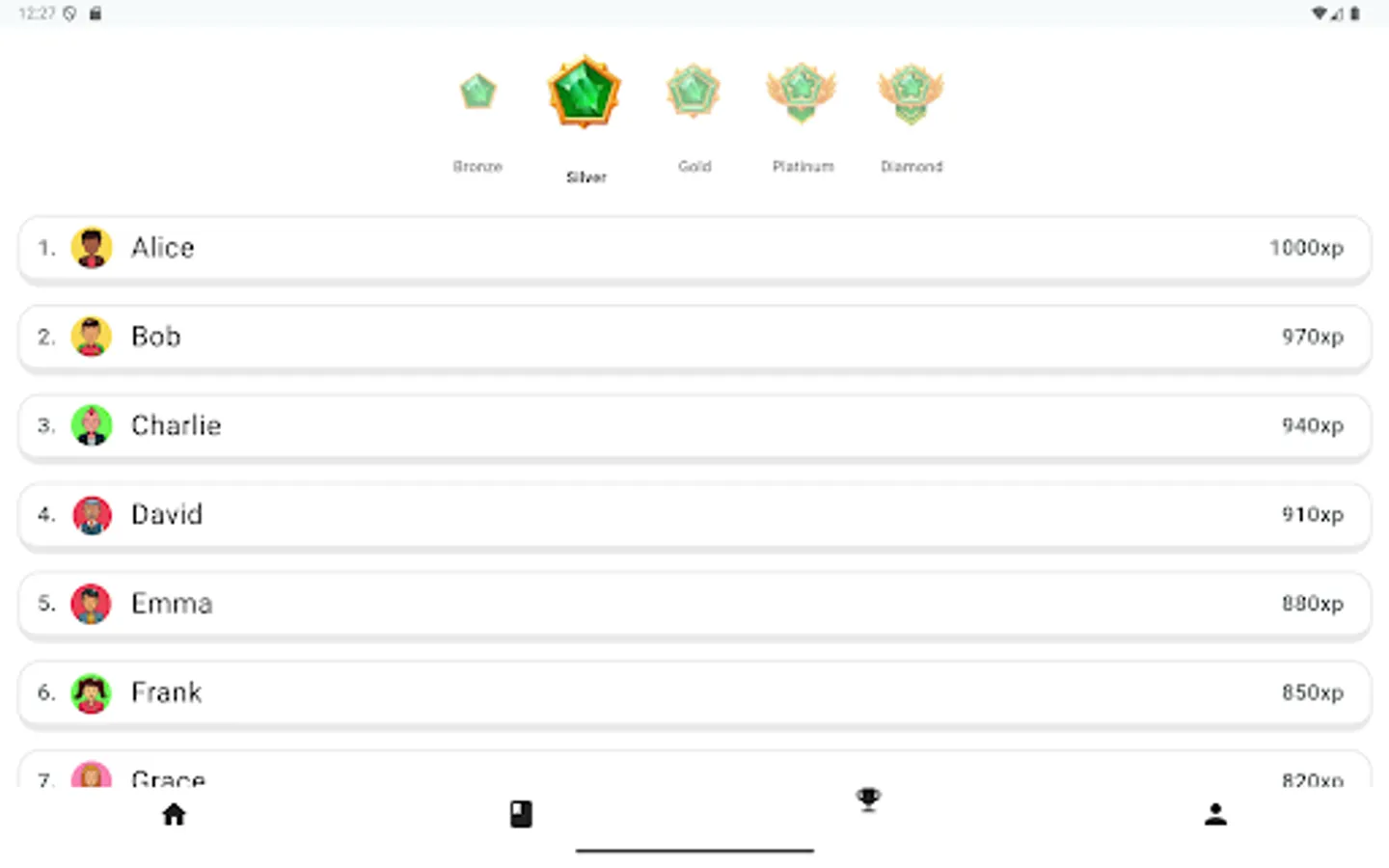 - Experience points (XP) for completing challenges