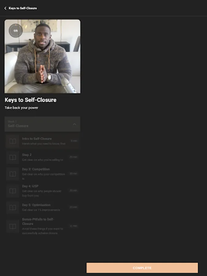 -Courses on Self-Closure, Emotional Needs Mastery, Entrepreneurship, and more.