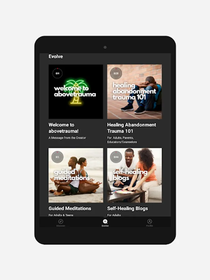 abovetrauma is a healing app to support Black Americans in overcoming trauma, restoring inner peace, and activating happiness.