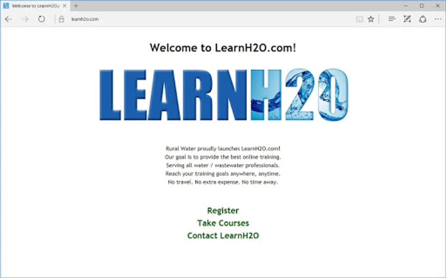 Rural Water proudly launches LearnH2O.com! Our goal is to provide the best online training. Serving all water / wastewater professionals. Reach your training goals anywhere, anytime. No travel. No extra expense. No time away.