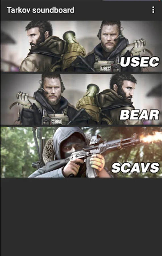 Download FREE SOUNDS from the Escape Tarkov sound packs. From your favorite PMC, Bear and SCAVS you will be able to download and save for free the yells and sounds they make. Pranking your friend has never been more fun, or use the sounds as your alarms!
