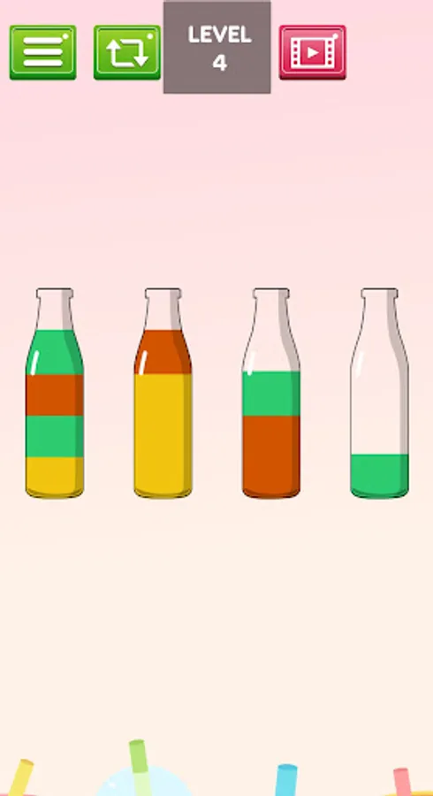 This color water sort 3D is a very easy bottle game. All you have to do in this whole color matching game is to use your brain and sort colors correctly in every tube. Guys, it's time to get your head in the game and sort color puzzle games. There are tubes filled with different colors. Quickly sort the colored waters in the tubes until all the same colors are together in each tube and become a champion of this color water sorting games.