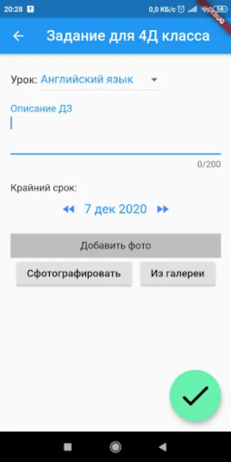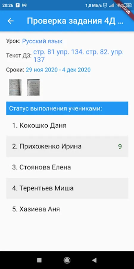 The main program. Works in conjunction with the "DZ student" program. Creation of DZ, automatic transmission to students, status of implementation, the ability to edit photos-answers of students, assigning marks.