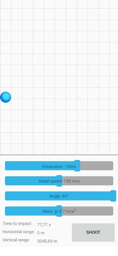the angle of the shot or the initial velocity of the bullet. In addition to this, the application also allows you to view several other shot parameters.
