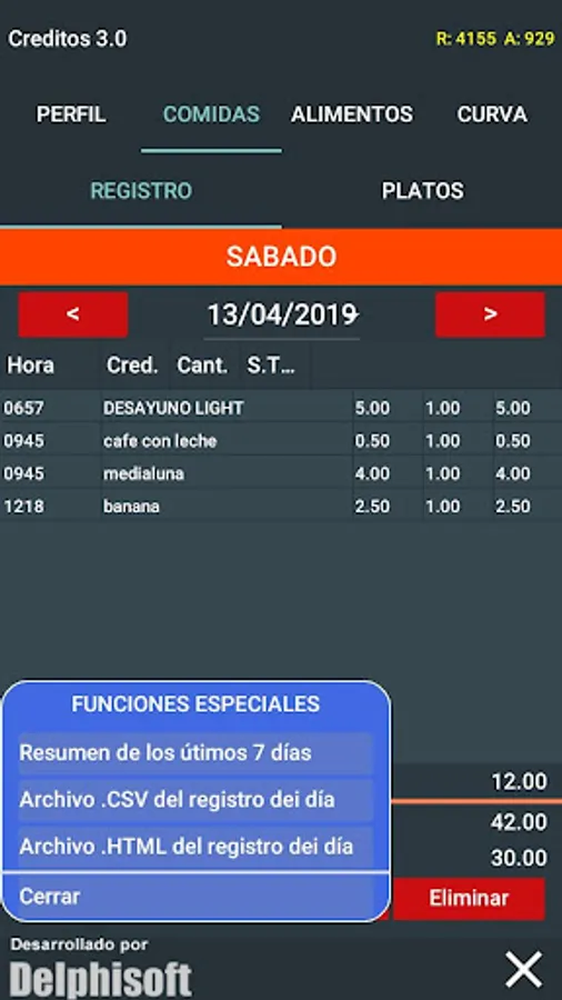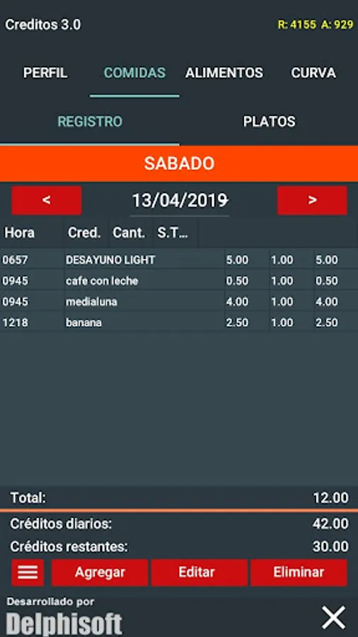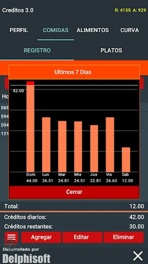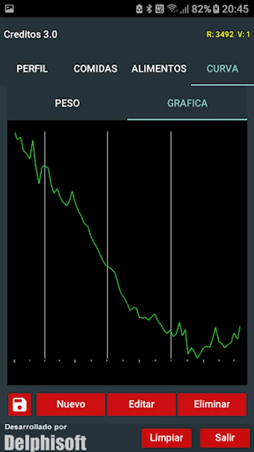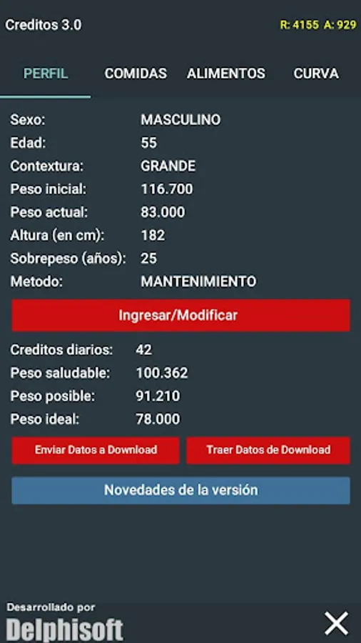 Application for calculating credits to consume per day, as well as the healthy and ideal weight as possible. Registration consumed during the day for daily calculation of credits consumed foods. See Table ordered food credits. Record weight curve and graphs.