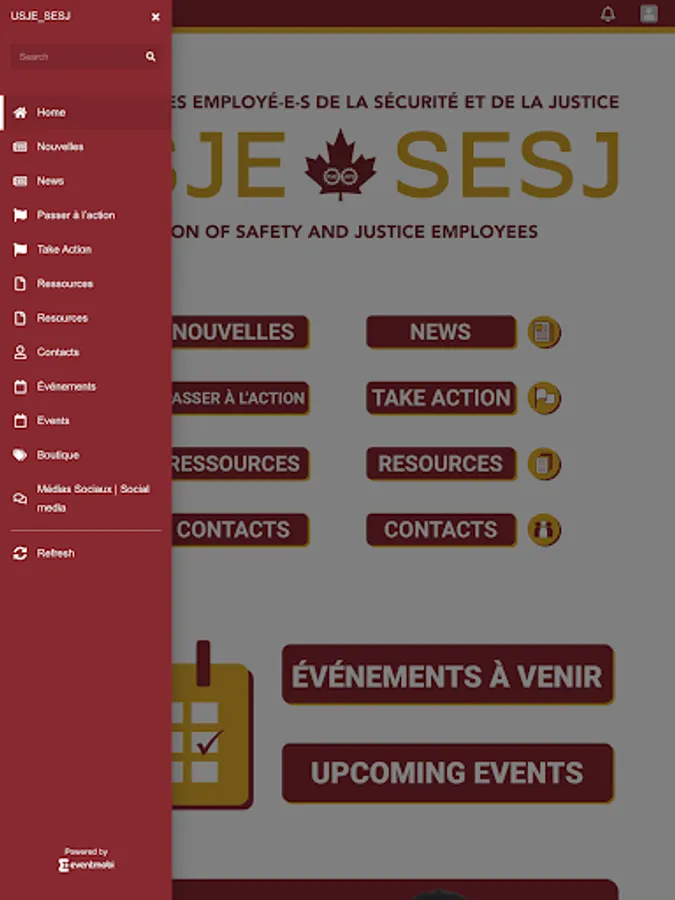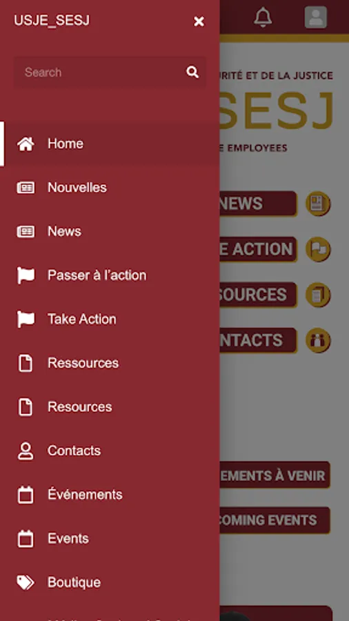 Official USJE app for local presidents and RVPs. Quick access to USJE-SESJ news, resources, campaigns, contact info, boutique and more. Application officielle du SESJ pour les membres des exécutifs des sections locales et VPR. Accès rapide aux actualités du SESJ, aux ressources, aux campagnes, aux coordonnées, à la boutique et plus encore.