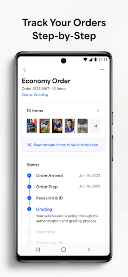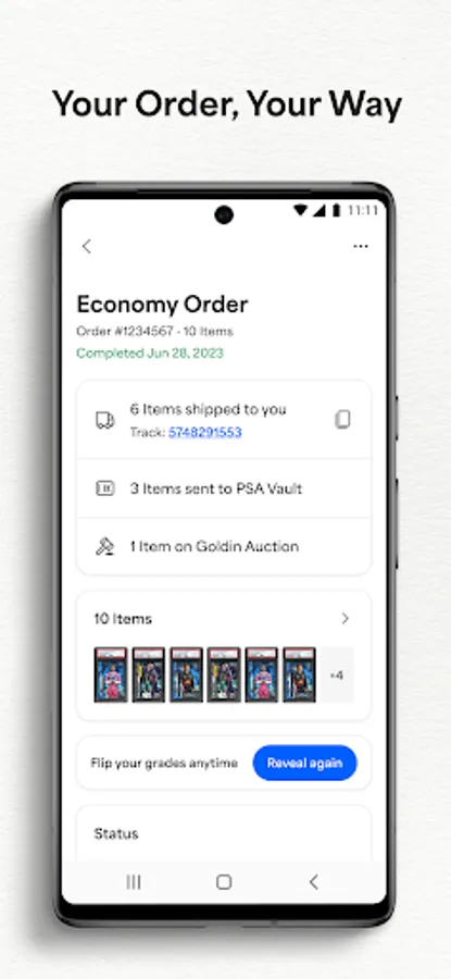 Track orders, reveal grade results and easily list cards for sale in the PSA app.