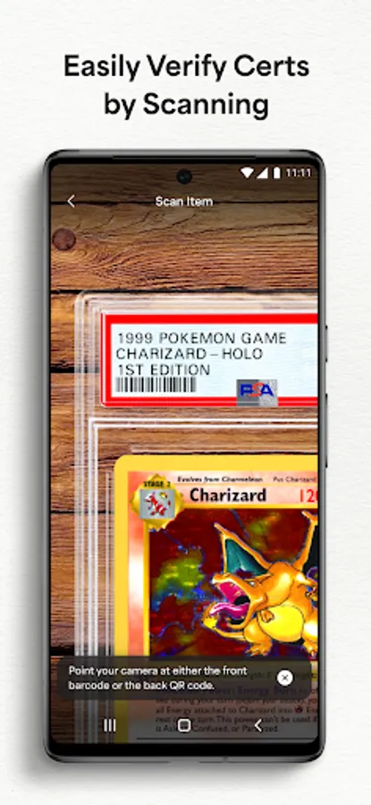 Instantly verify PSA authentication and card data with label barcode or QR code scanning.