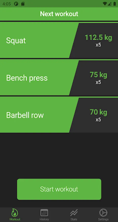 The app generates workouts for you and increases the weights automatically, so you can focus on lifting.