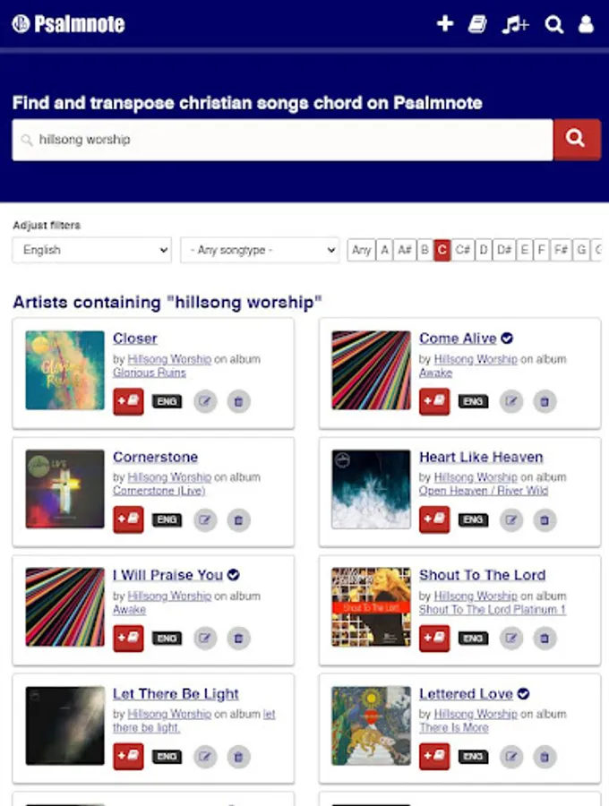 Psalmnote helps you find your favourite christian song lyrics and transposable chords.