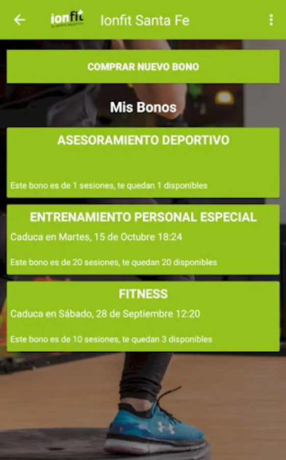 Your personal App to manage the services and favorite activities in your Ionfit center. From there you can (depends on the configuration made by the center):