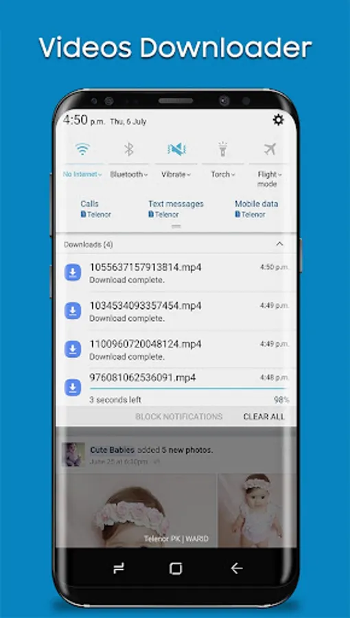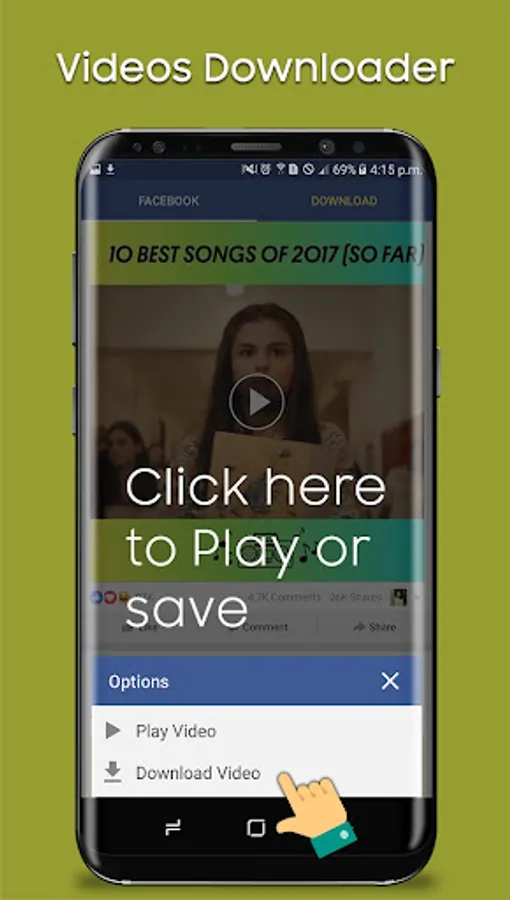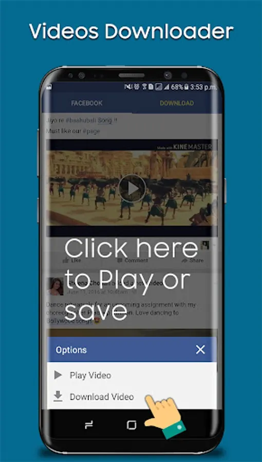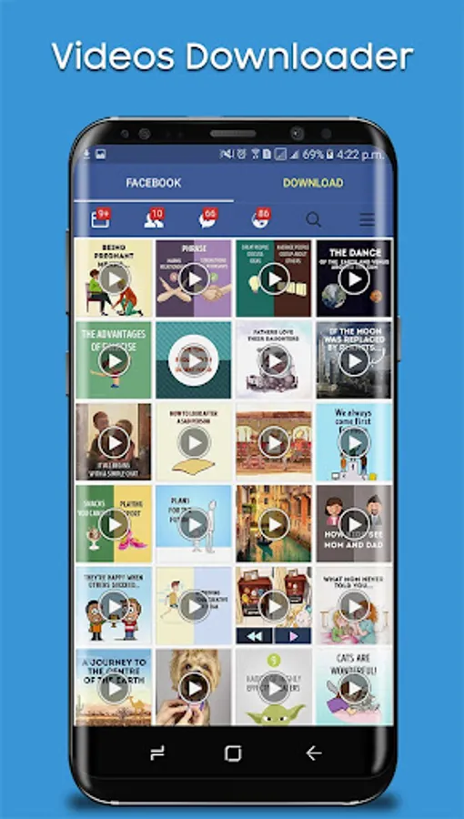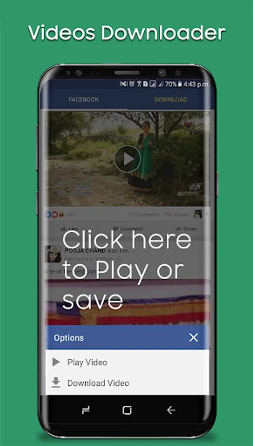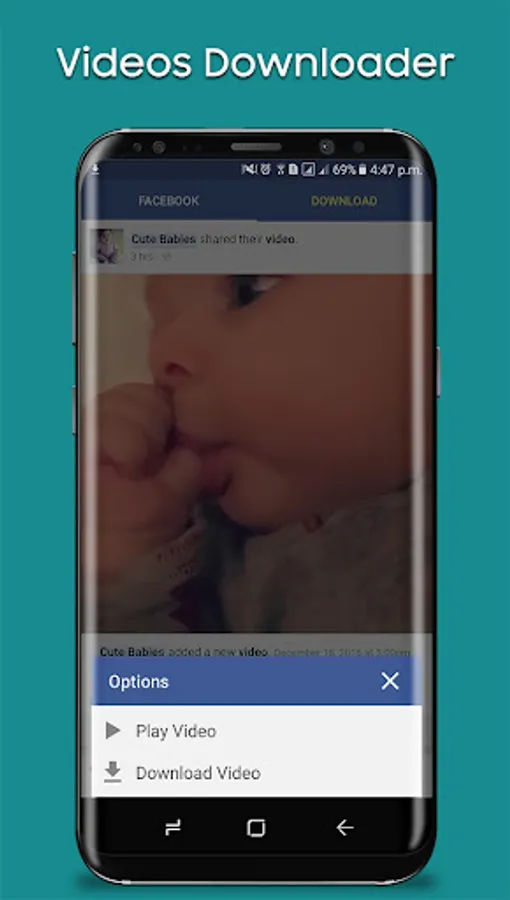 Faster Video Downloader is the best video downloader app to download and save videos from Facebook, and then you can play them offline. It allows you to browse through your Facebook timeline, your news feeds, and your friends' or pages' walls using a built-in browser that allows you to select the video you want to download and save it so you can play it later or share it with your friends via different apps.