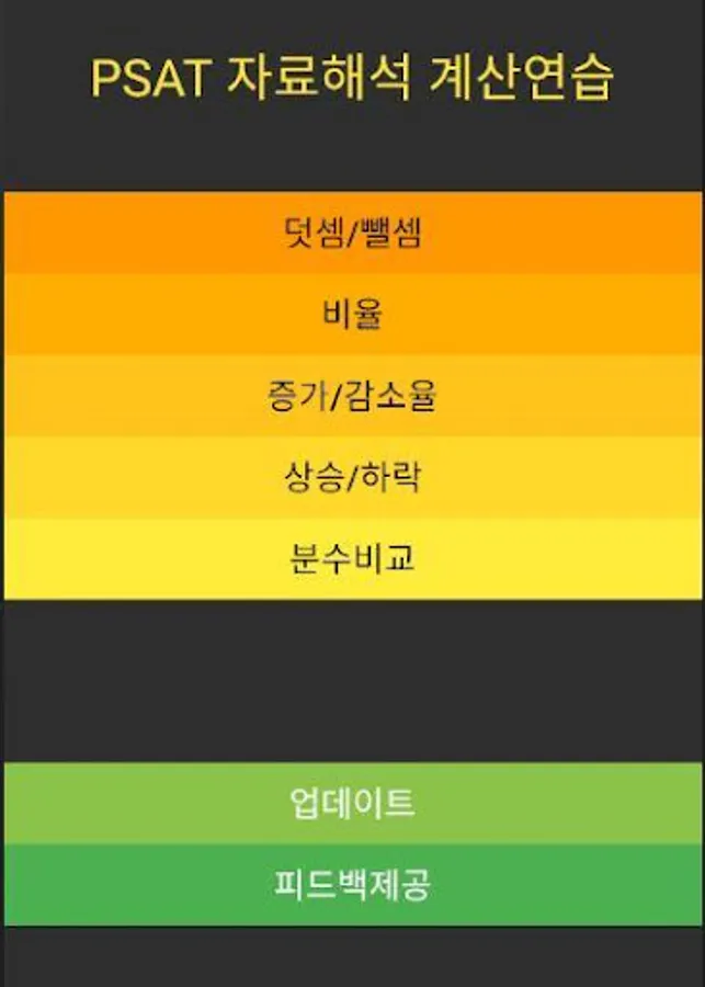 Practice the types of calculations that frequently occur in actual PSAT data analysis areas such as addition / subtraction, ratio, increase / decrease, rise / fall, and fractional comparisons.