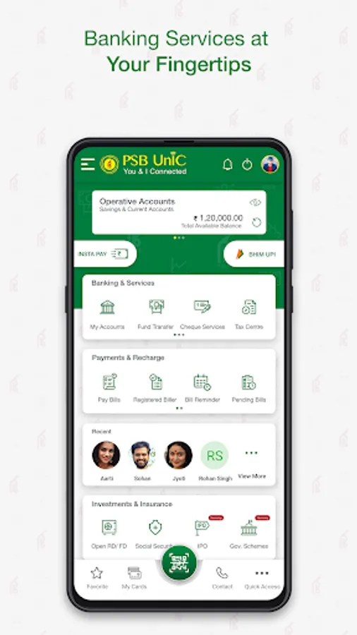 PSB UnIC mobile banking app is a one stop solution allowing you to send money, view account details, generate statement, invest in term deposits, manage debit card, cheque services and many other exclusive services at your fingertips. PSB UnIC App allows transferring funds within and outside bank account using UPI, NEFT, RTGS, IMPS.