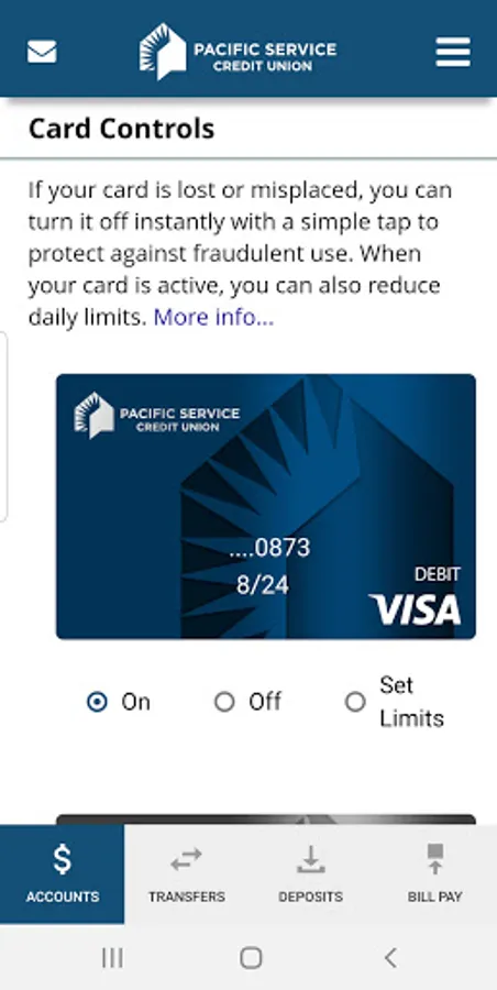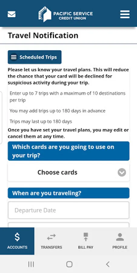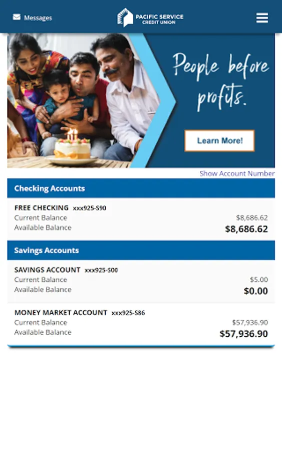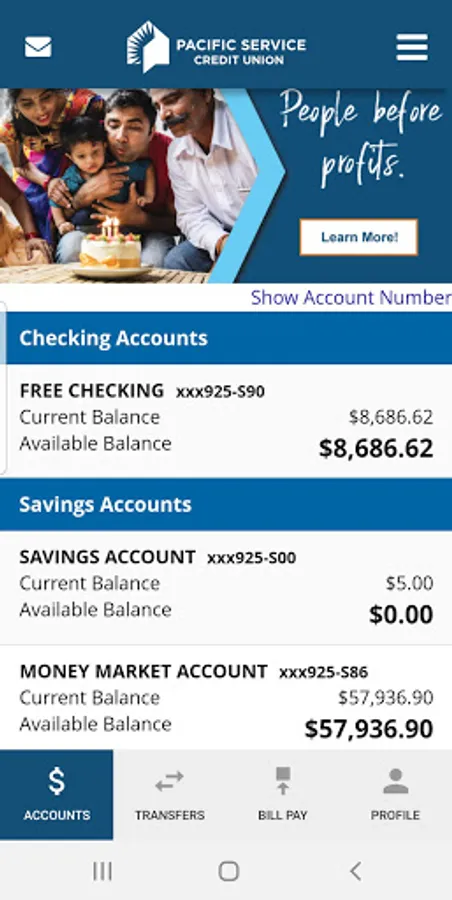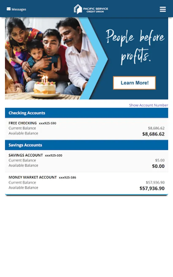 Pacific Service Credit Union mobile banking allows you to check balances, view transaction history, transfer funds, deposit checks and pay loans on the go