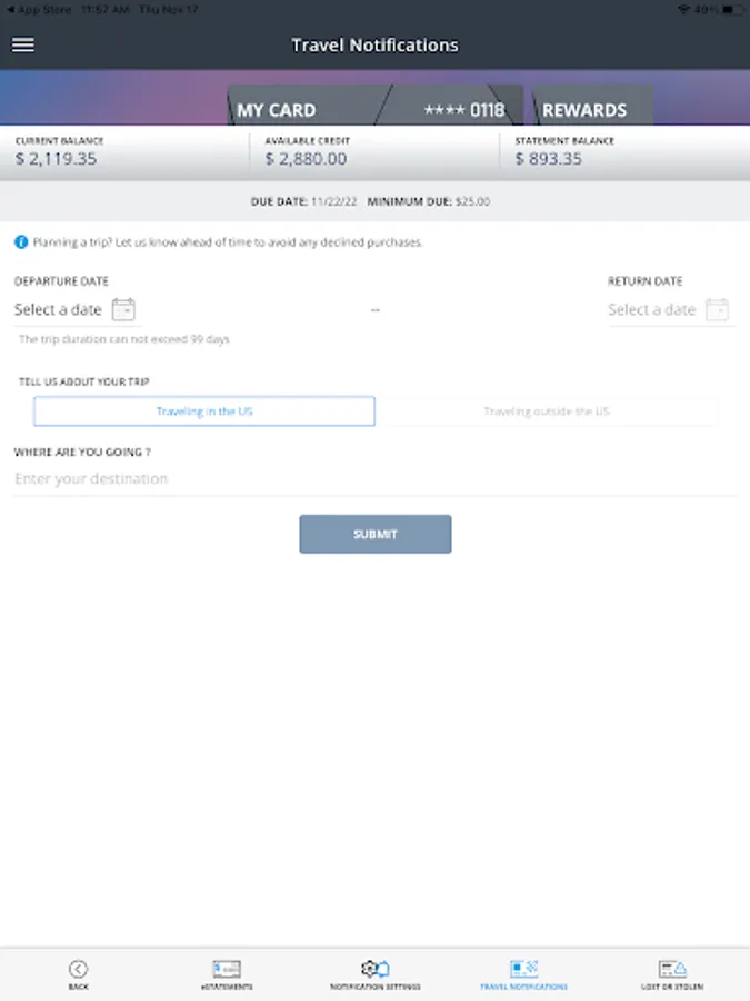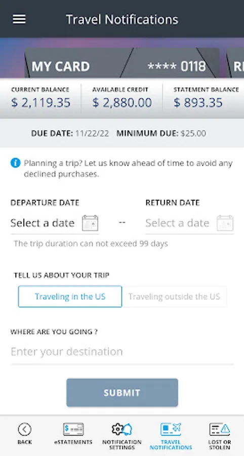 * Set travel notifications.
