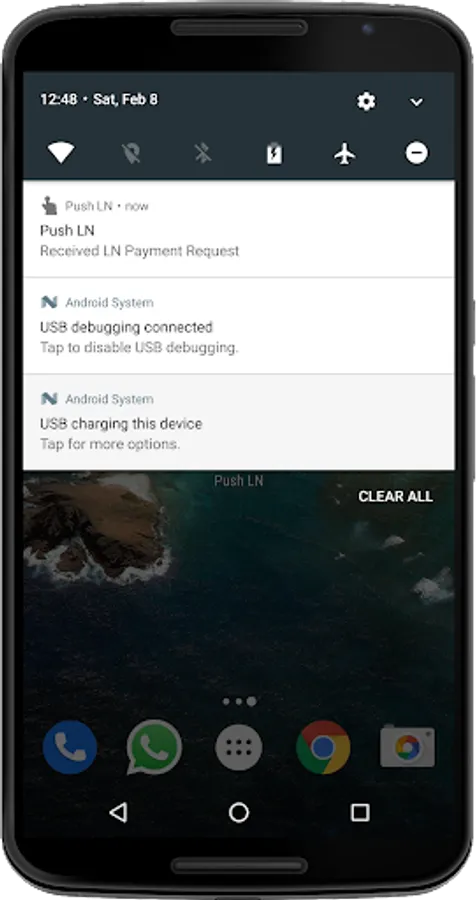 Pair with Push LN chrome browser extension to easily pay lightning invoices from your phone when you click on a link on your laptop/desktop browser.