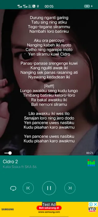 Immediately have this application for free right now. In the Kalia Siska ft SKA 86 2021 song application, besides being able to be played offline, complete lyrics have also been provided which can guide you to sing and karaoke. If you don't memorize the lyrics this will really help you sing.