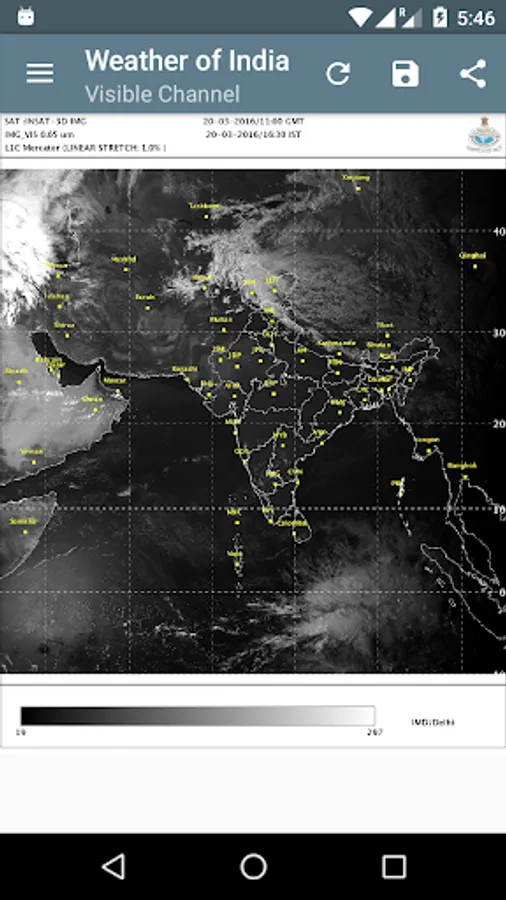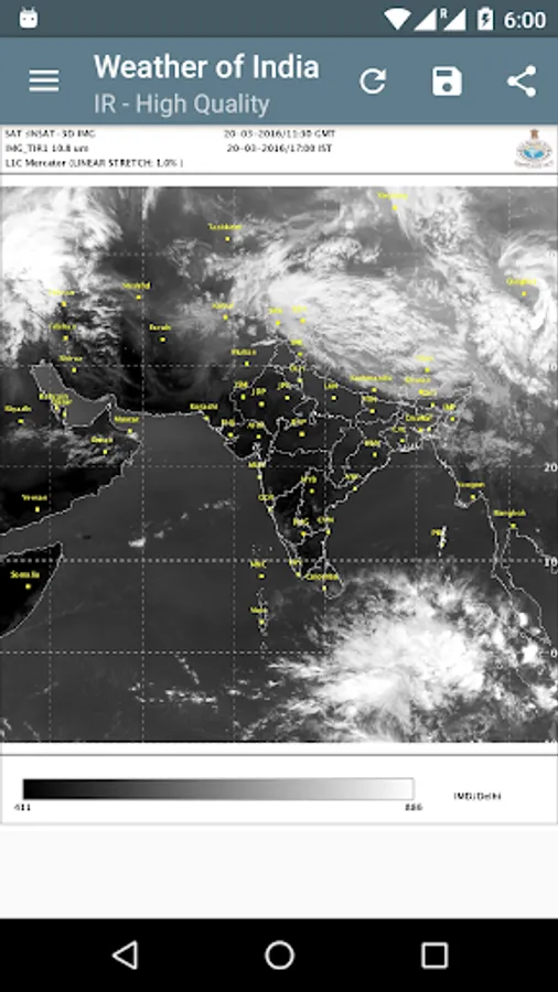 Weather of India Application allows you to view Satellite images of the weather from the official website of government of india's Department (IMD)