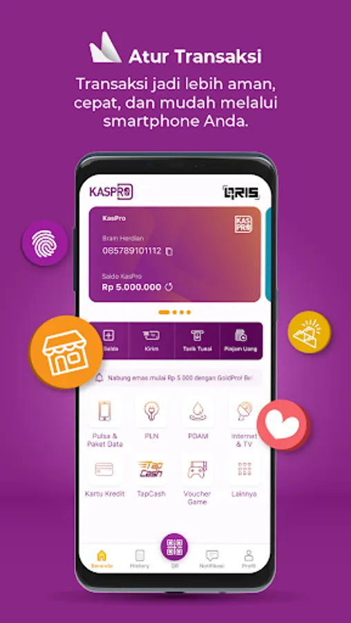 KasPro is a solution for all your mobile payment needs. Get Pulsa recharge, PLN, P2P money transfer, data package, internet & TV recharge, water bill payment (PDAM), Pay by Barcode at your favorites stores. It is simple, fast, hassle-free and completely secure.