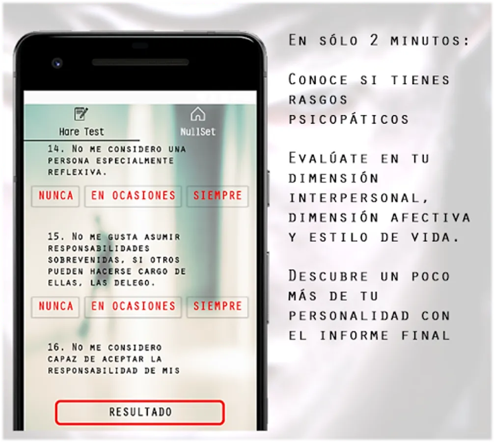 Find out if you live with a psychopath. With 20 questions you will be ready to know if someone close to you is a psychopath. Test yourself, assess your interpersonal, emotional and lifestyle dimensions and determine if you have the characteristics of a psychopath, thanks to the renowned Hare test.