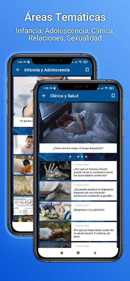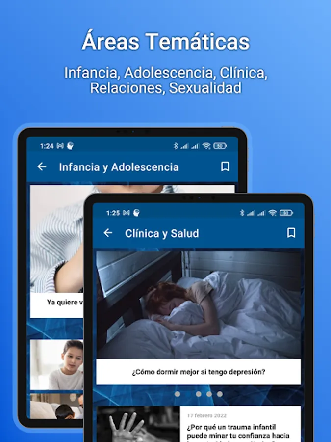 PsicApp News extracts around 250 weekly publications from the field of Psychology, tracking the most reputable sources in Spanish speaking every hour and classifying their content into thematic areas: Childhood and Adolescence, Clinical and Health, Relationships and Sexuality.