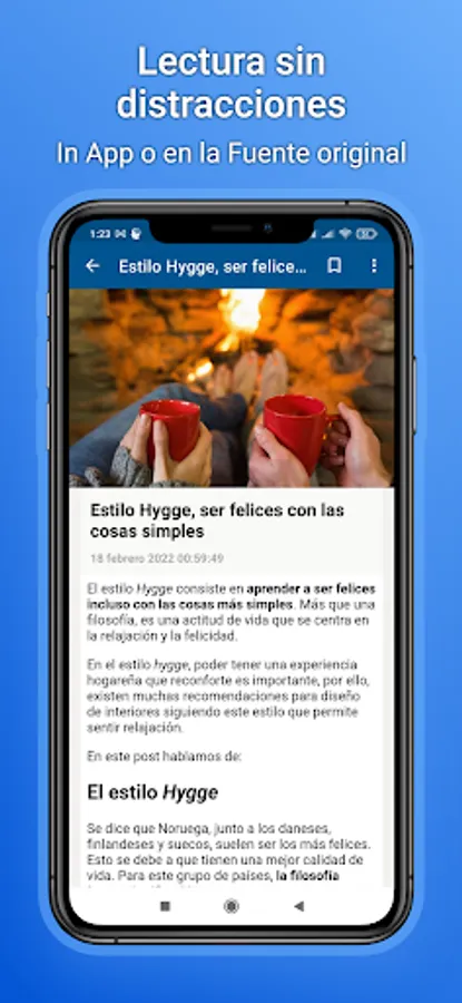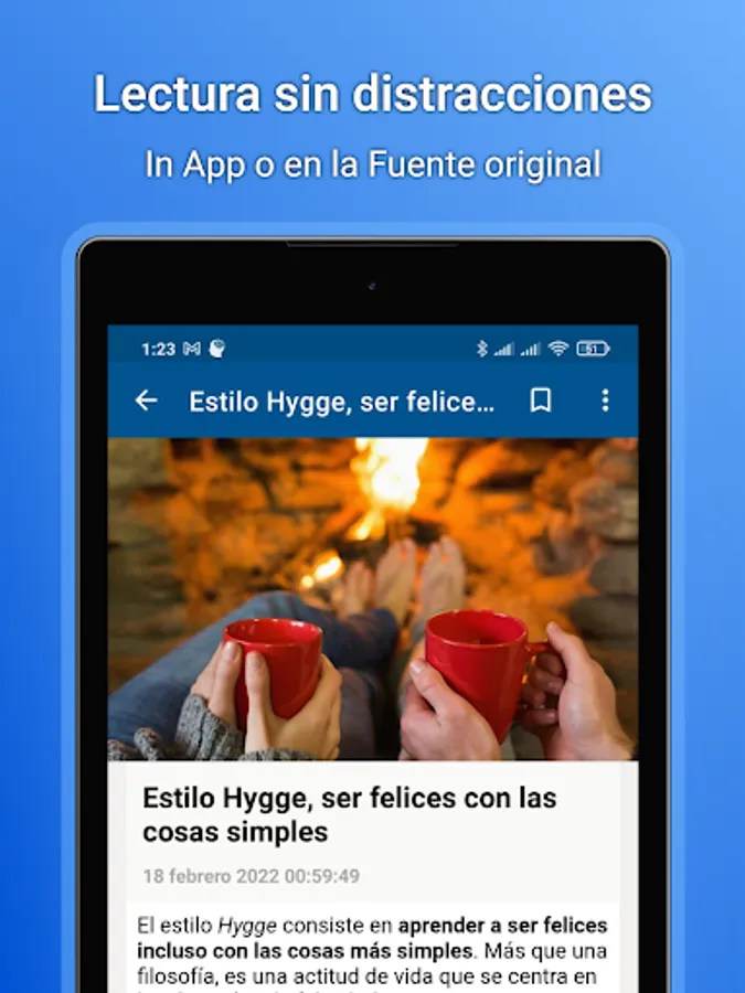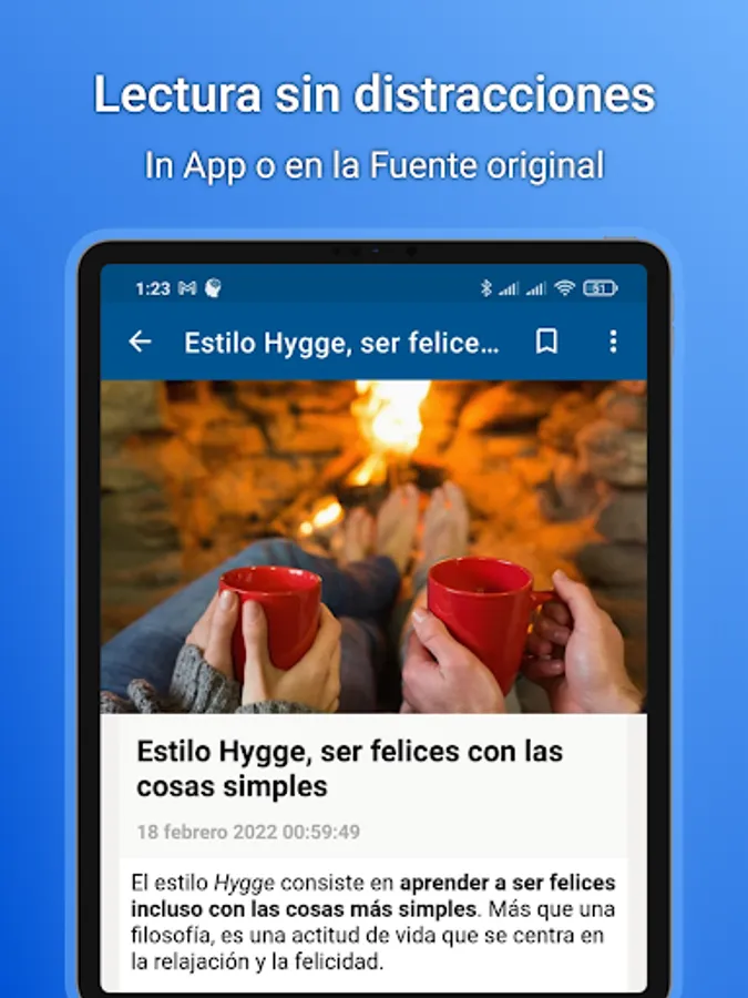 You can read the content extracted from the App itself or from the original source, share each publication with your contacts or social networks and create a favorites file with your favorite articles.