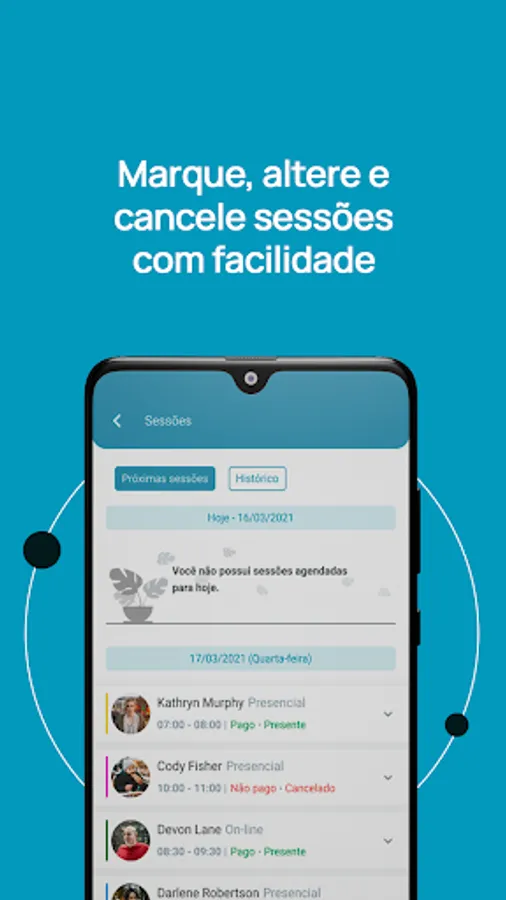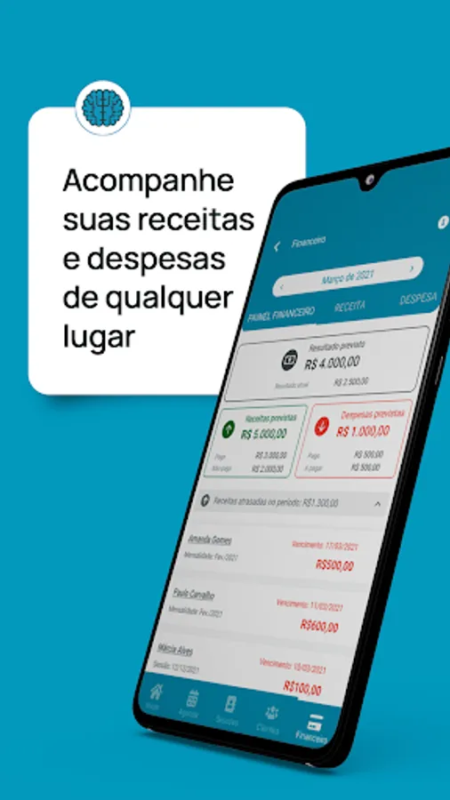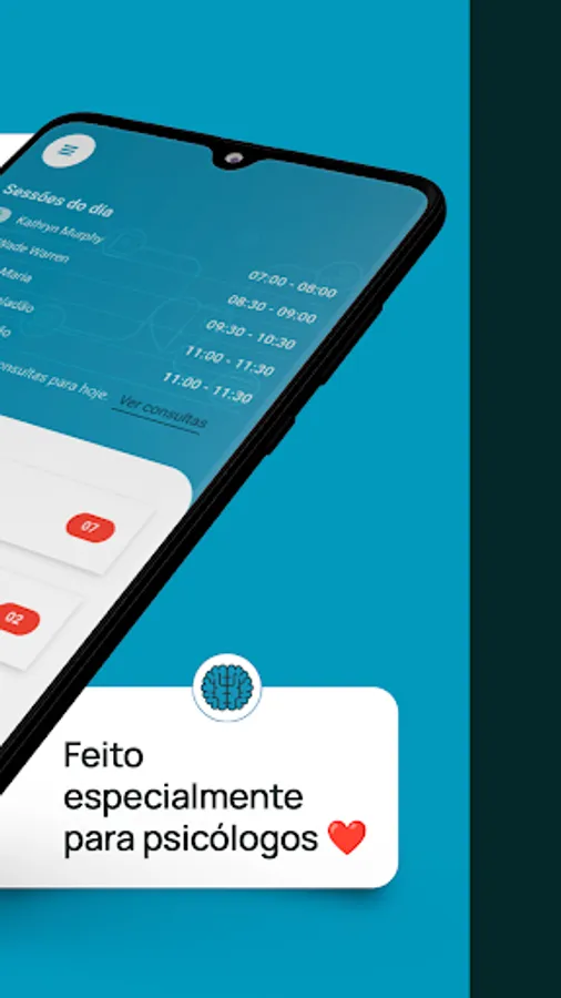 Now, imagine having all the essential information and tools in the palm of your hand, directly on your mobile phone. With our app, you'll have a summary of your online schedule, patient management, financial control and session tracking. All this in a practical, intuitive and completely safe way.