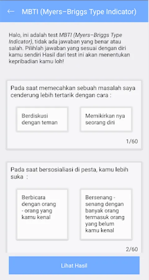 This application will help to figure out your character by using Personality Test or Psychology Test Myers–Briggs Type Indicator ( MBTI ) and temperament.