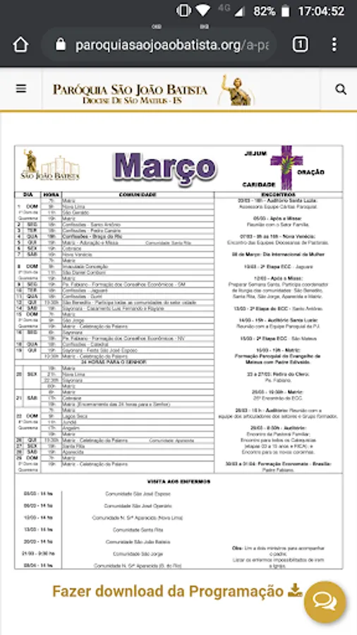 The official app of the Parish São João Batista - Braço do Rio - ES was developed by the Pastoral da Comunicação (PASCOM) parish for all Holy People of God to have one more way to access information and events of the Parish.
