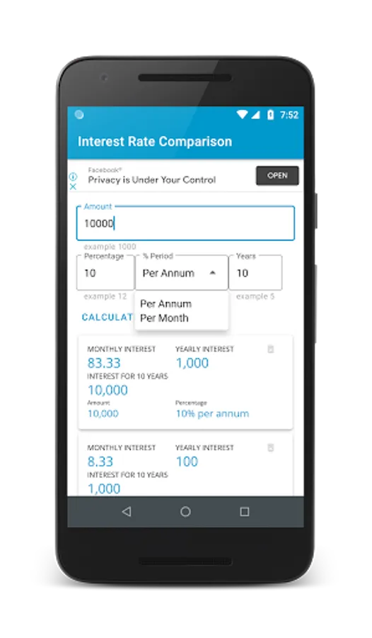 Interest Rate Comparison app used to calculate Interest rate and allow to store multiple records, which is each to compare with each other.