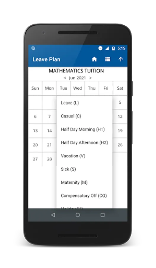 Leave Plan app allows to store the leave status and notes. The following are the leave status