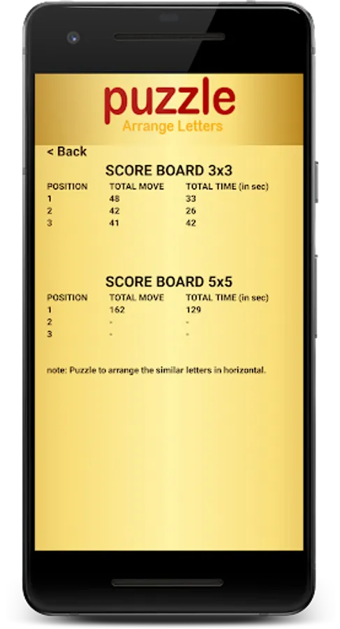 - List icon on the top right will list top three position of winners based on total move of boxes.