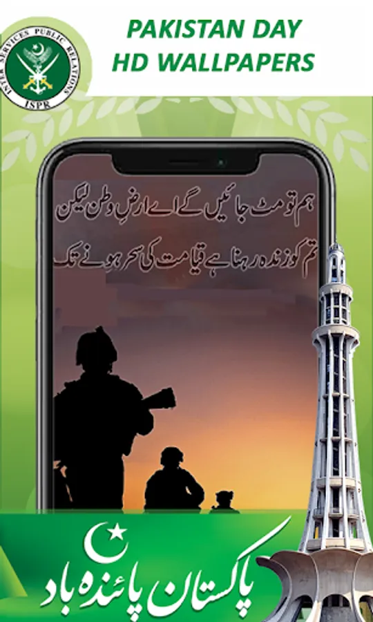 The play mode is different, beautiful images slides will be presented side by side of audio play. Every picture is elaborating a story of each Pakistani field like Pak Army, sports, the moments of migration, victories of national heroes and the struggle of the pioneers of Pakistan.