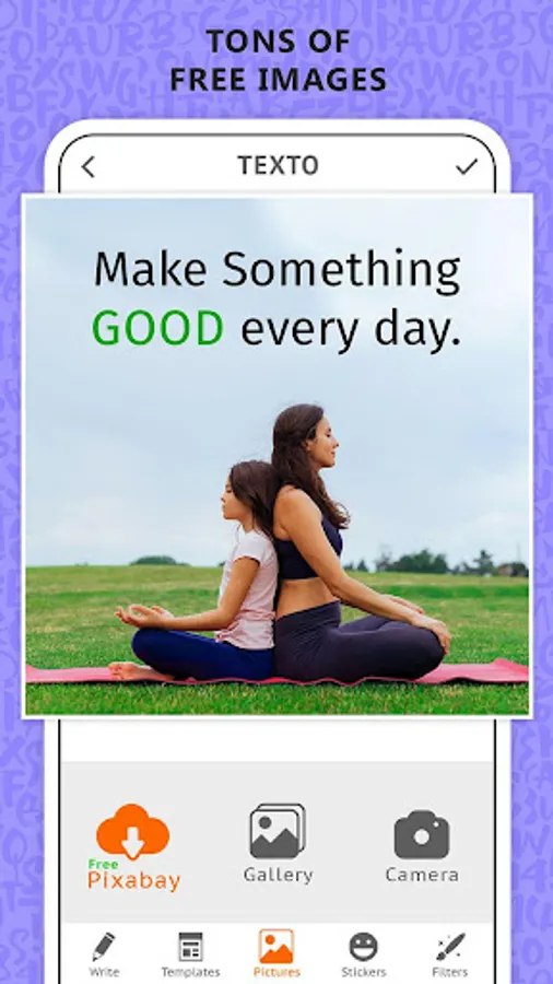 Text Over Photo is the best way to create a message with Text on Photos. You can Find Photos for any occasion with search features add Text on photos