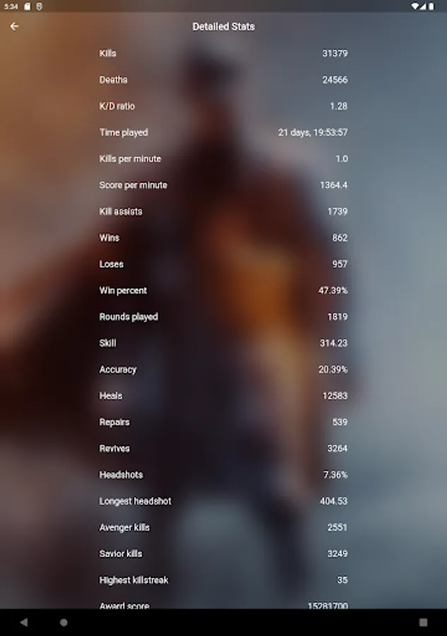 Unofficial stats tracker for Battlefield 1.