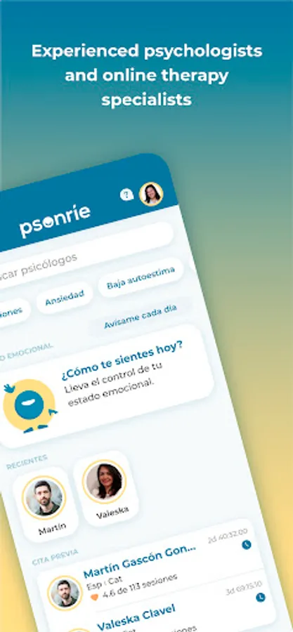 - Discovery: Orientation session that explains how Psonríe can help you and it shows you how it works.