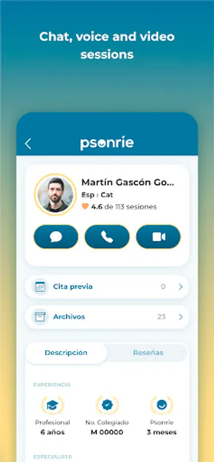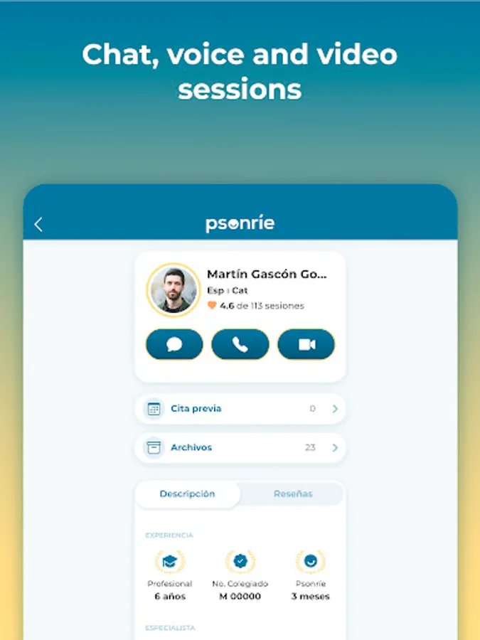 - Personalized attention: You can choose how you want to talk to your psychologist. We offer you a service that is adapted to your needs with chat, voice and video sessions.
