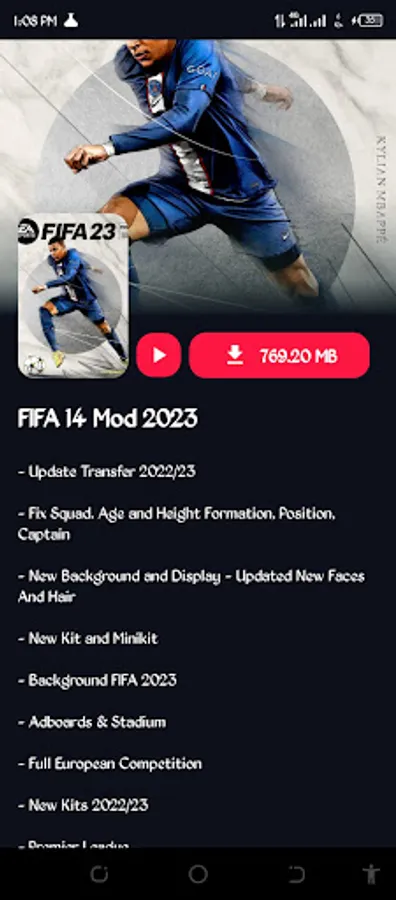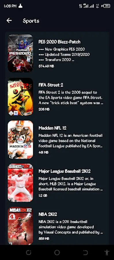 2. It'll Open new Activity which contains the details about the Game : (Name, Size, Description, etc)