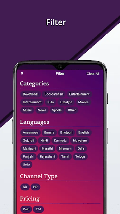 ★ Filters:- It has all filters like language, channel category, channel type, channel price. So users can easily find their choice of channels or packages.