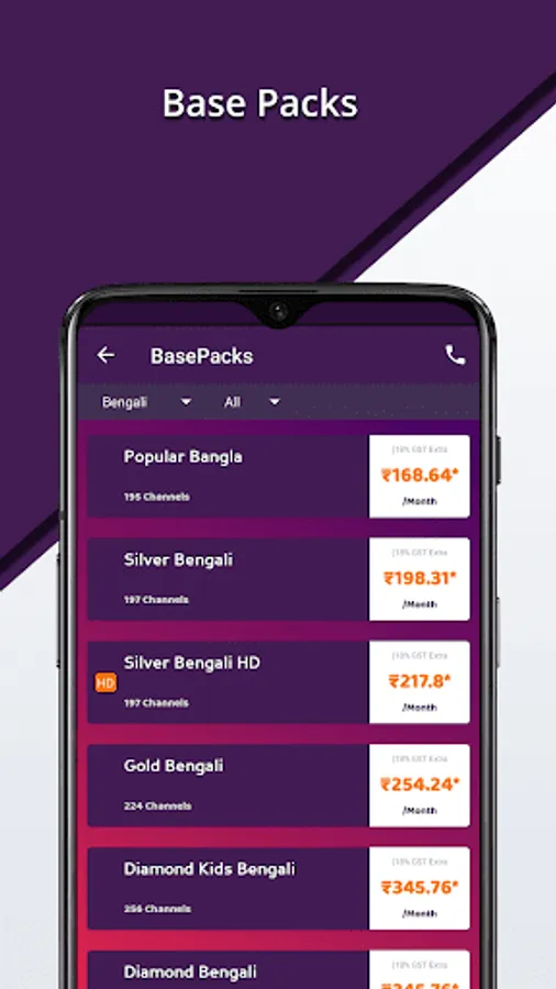 Dth plans app has all plans of all region like Assamese , Bangla , Bhojpuri , English , Gujarati , Hindi , Kannada , Malyalam, Manipuri, Marathi, Mizoram, North East, Odia, Punjabi, Rajasthani, Tamil, Telugu, Urdu